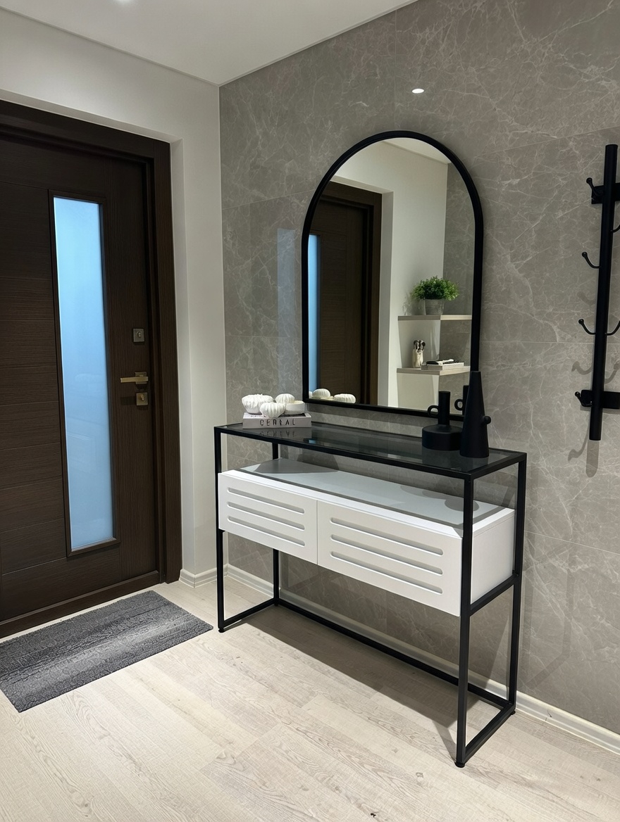 Ürün ölçüleri: Dresuar : 90 Cm yükseklik, 35 Cm derinlik , 120 Cm genişlik ölçülerde , Ayna 80X100 Cm'dir, Metal profil kullanılmaktadır,