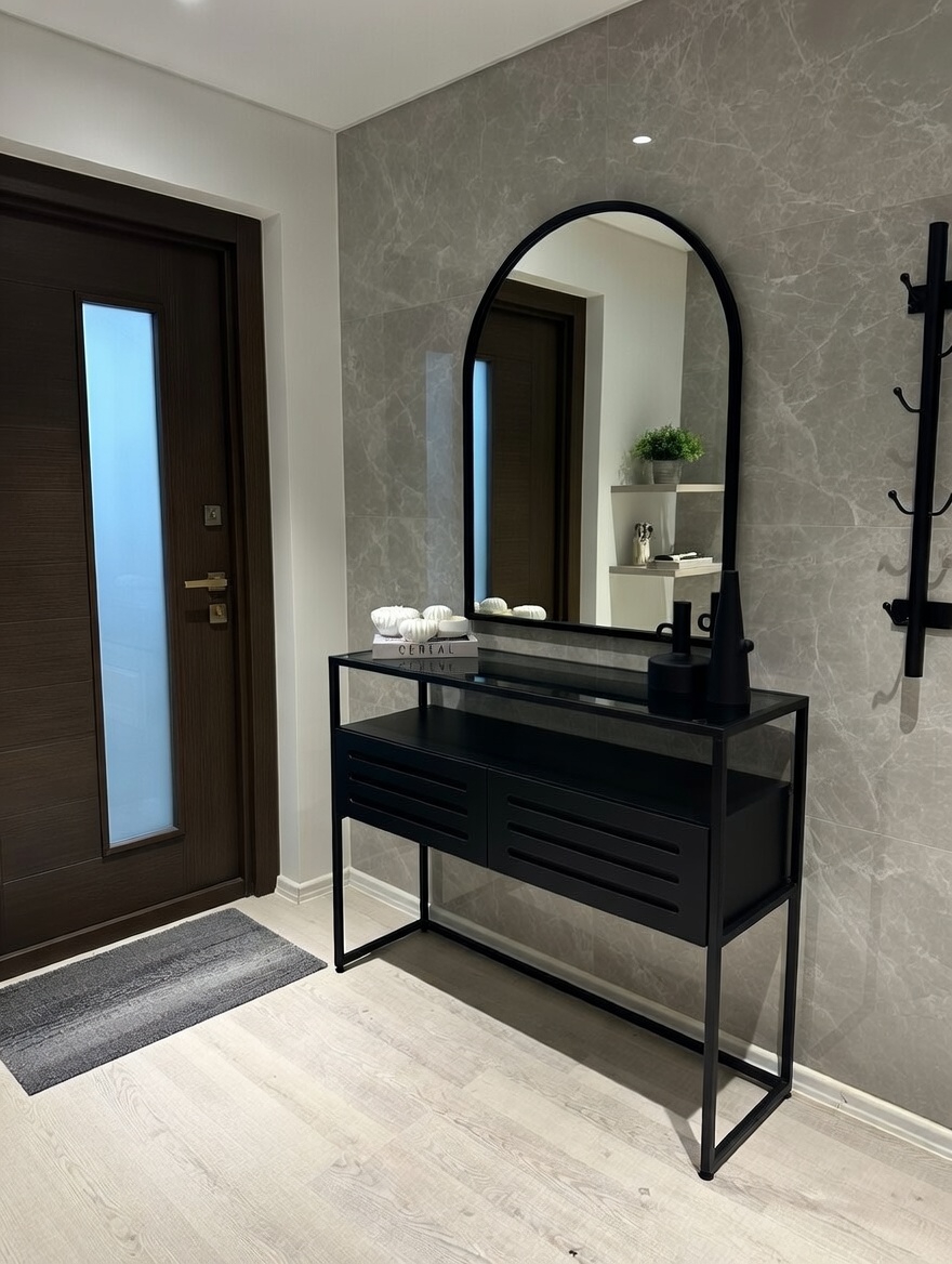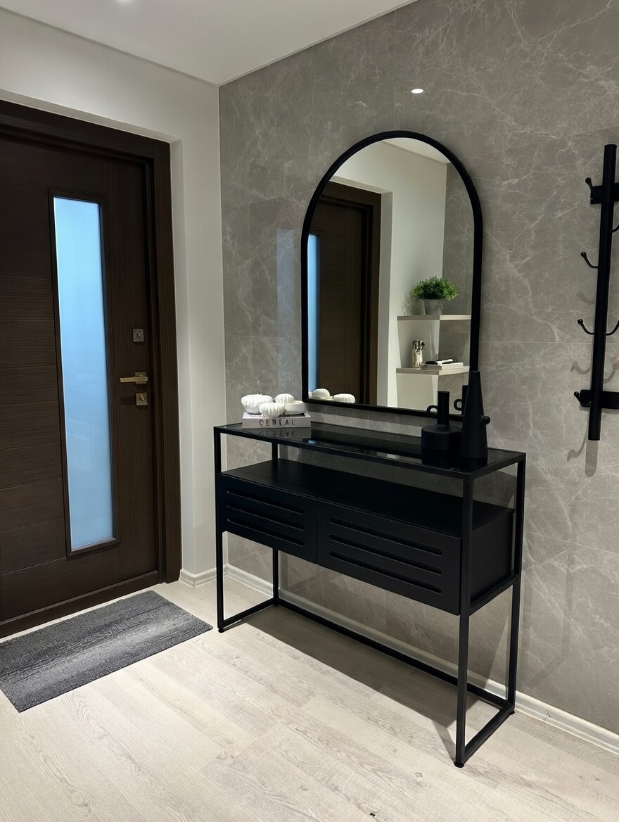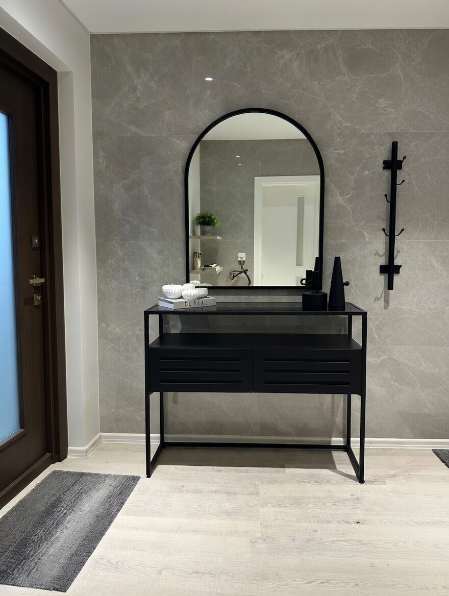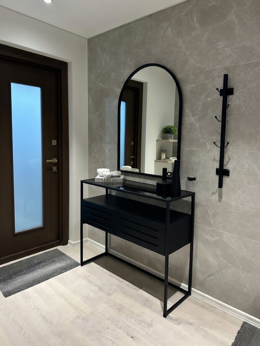 Ürün ölçüleri: Dresuar : 90 Cm yükseklik, 35 Cm derinlik 120 Cm genişlik ölçülerde , Ayna 80X100 Cm'dir, Metal profil kullanılmaktadır, Mdf Lake , ÇEKMECE siyah RENKTEDİR
