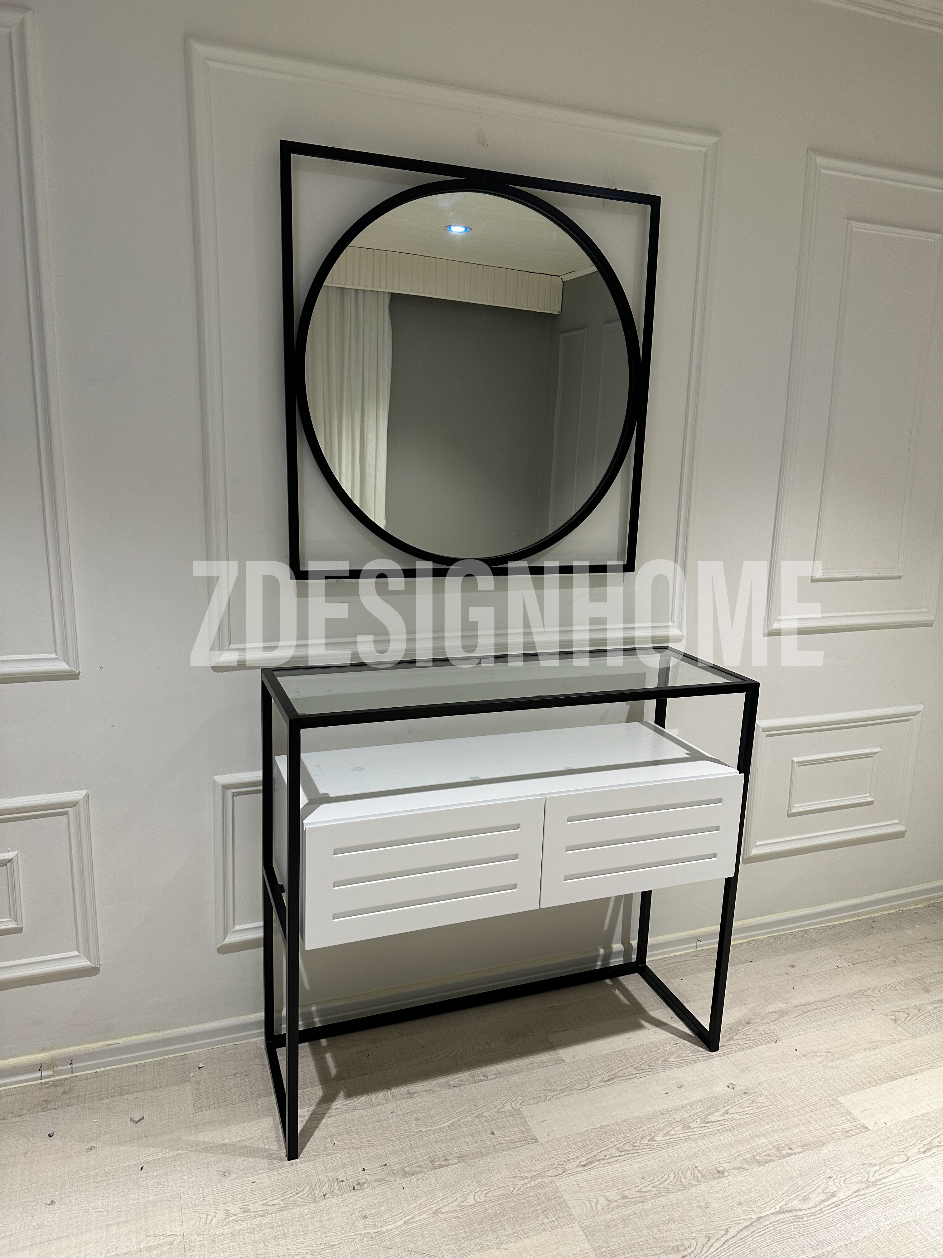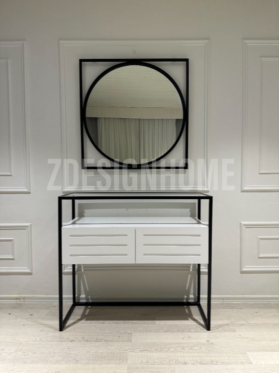 Ürün ölçüleri: Dresuar : 90 Cm yükseklik, 35 Cm derinlik 100 Cm genişlik ölçülerde , Ayna 85 Cm'dir, Metal profil kullanılmaktadır, Mdf Lake , Mobilya rengi beyazdır.