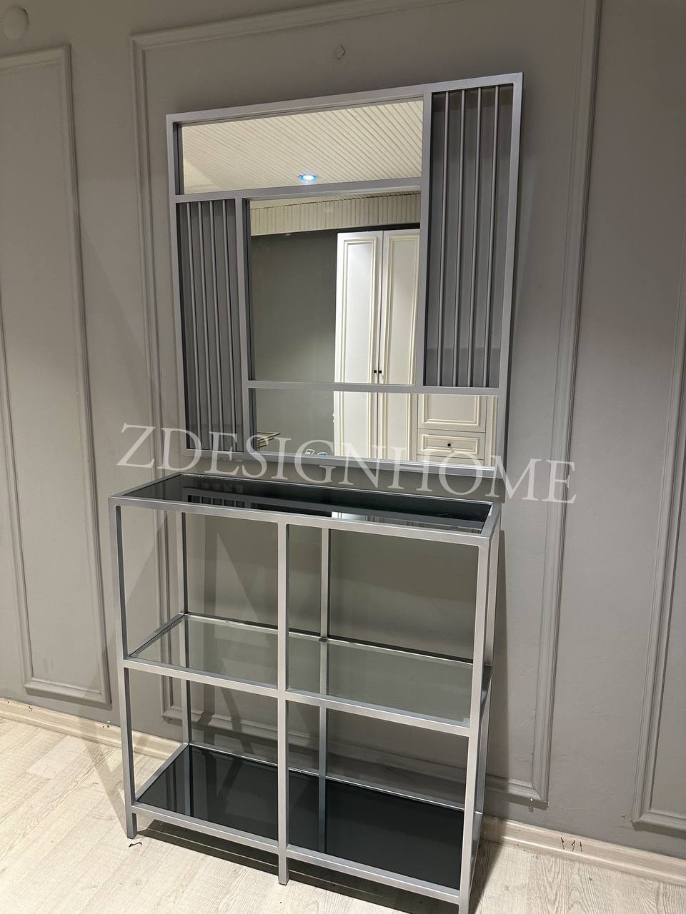 katarken, cam yüzeyindeki bronz ayna raf da odanıza modern bir hava katar. Bu