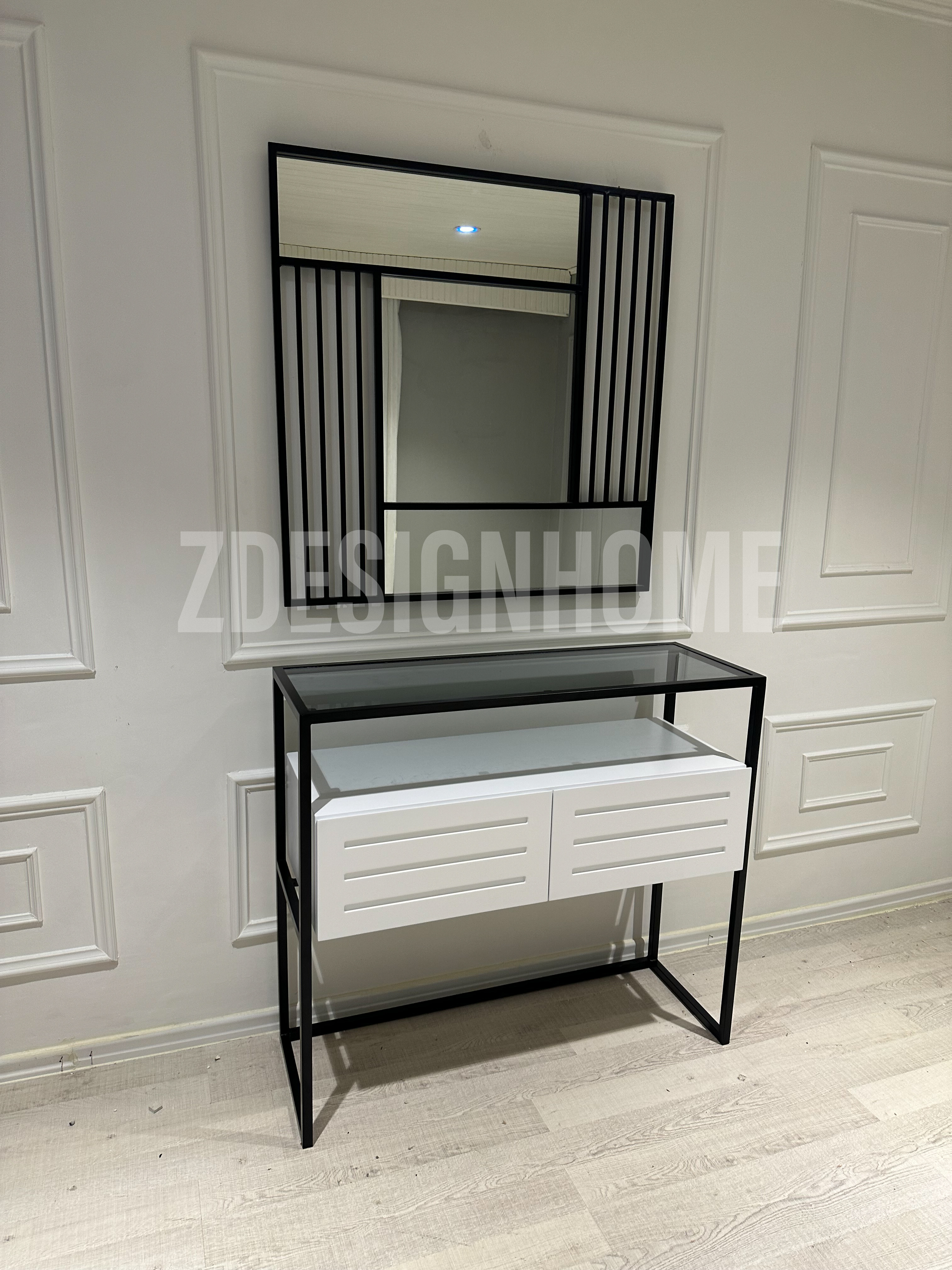 Ürün ölçüleri: Dresuar : 90 Cm yükseklik, 35 Cm derinlik 100 Cm genişlik ölçülerde , Ayna 90 Cm'dir, Metal profil kullanılmaktadır, Mdf Lake , Mobilya rengi beyazdır. Üst cam füme camdır.