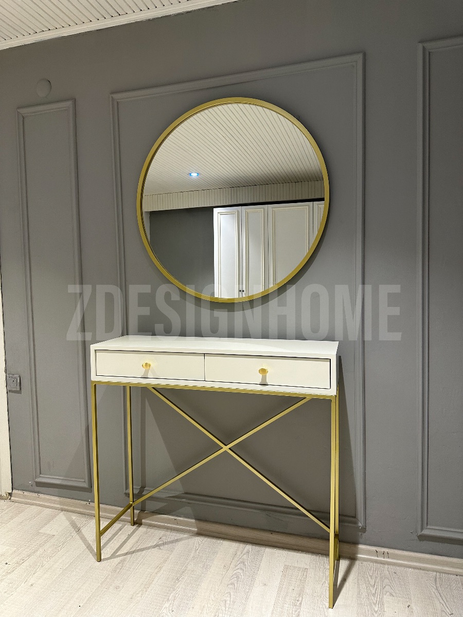 Ürün ölçüleri: Dresuar : 95 Cm yükseklik, 30 Cm derinlik 100 Cm genişlik ölçülerde , Ayna 90 Cm'dir, Metal profil kullanılmaktadır, Mdf Lake , ÇEKMECE BEJ RENKTEDİR