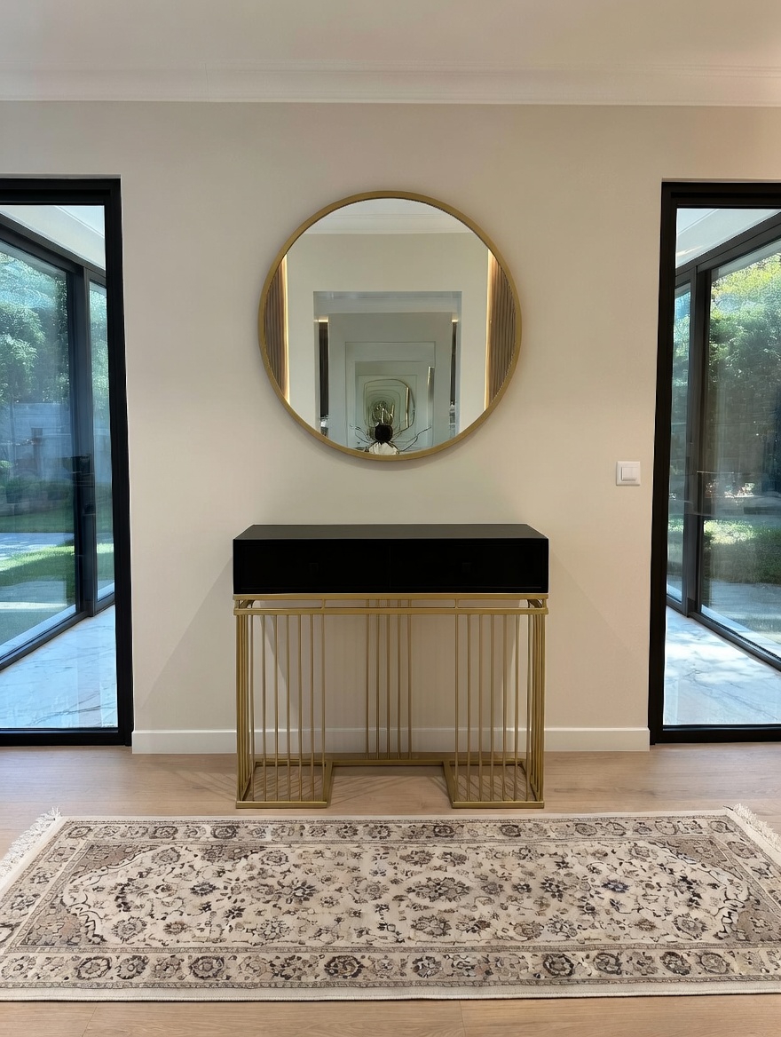 Ürün ölçüleri: Dresuar : 95 Cm yükseklik, 30 Cm derinlik 100 Cm genişlik ölçülerde ,   Ayna 90 Cm'dir, Metal profil kullanılmaktadır, Mdf Lake , ÇEKMECE SİYAH RENKTEDİR
