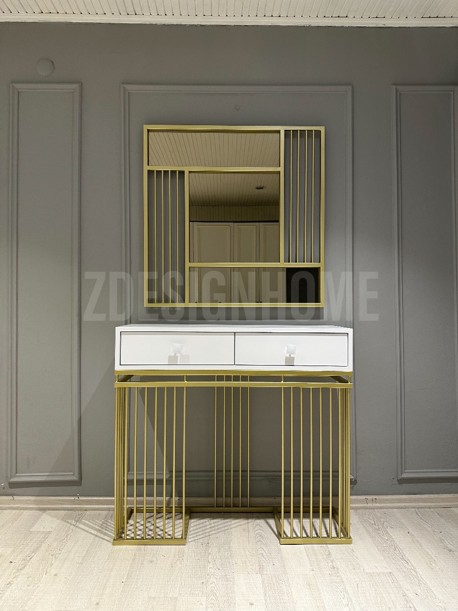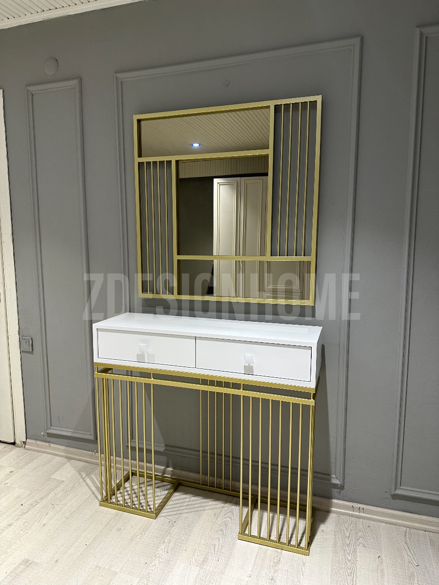Ürün ölçüleri: Dresuar : 90 Cm yükseklik, 30 Cm derinlik 100 Cm genişlik ölçülerde , Bronz Ayna 90 Cm'dir, Metal profil kullanılmaktadır, Mdf Lake , Mobilya rengi beyazdır.