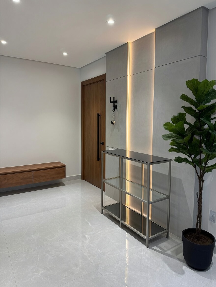 katarken, cam yüzeyindeki füme ayna raf da odanıza modern bir hava katar. Bu