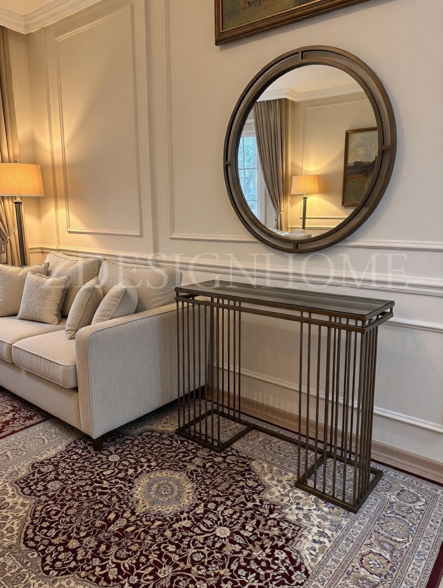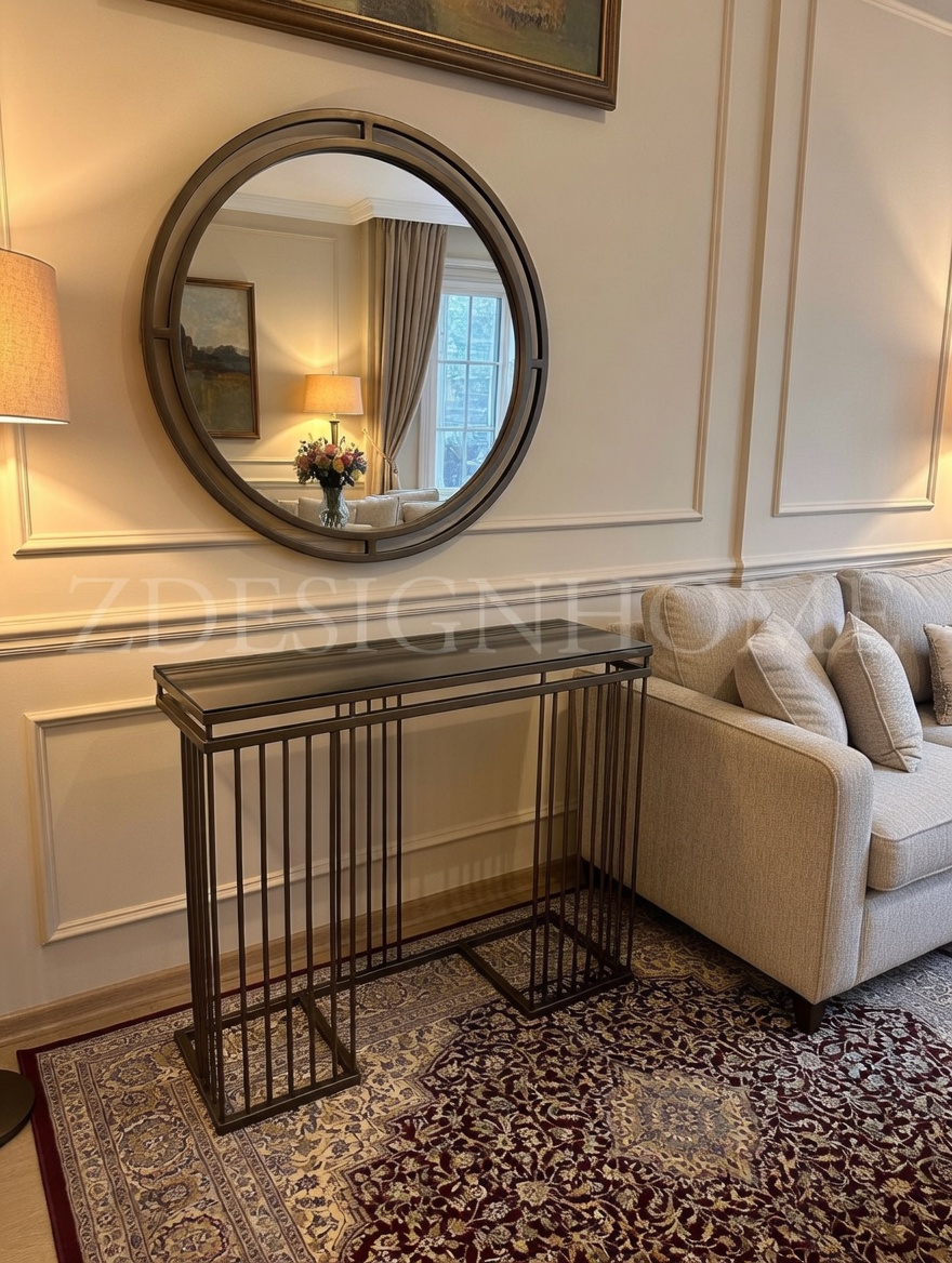 100 × 30 × 90 cm ölçülerindeki dresuar, geniş ve kullanışlı yüzeyi sayesinde hem dekoratif hem de pratik bir kullanım sunar. Takıma eşlik eden 90 cm ölçülerindeki ayna, bronz detaylarıyla bulunduğu mekâna derinlik ve modern bir görünüm kazandırır.