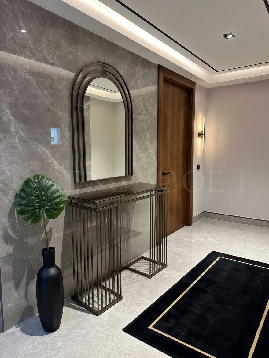 100 × 30 × 90 cm ölçülerindeki dresuar, geniş ve kullanışlı yüzeyi sayesinde hem dekoratif hem de pratik bir kullanım sunar. Takıma eşlik eden 90 cm ölçülerindeki ayna, bronz detaylarıyla bulunduğu mekâna derinlik ve modern bir görünüm kazandırır.
