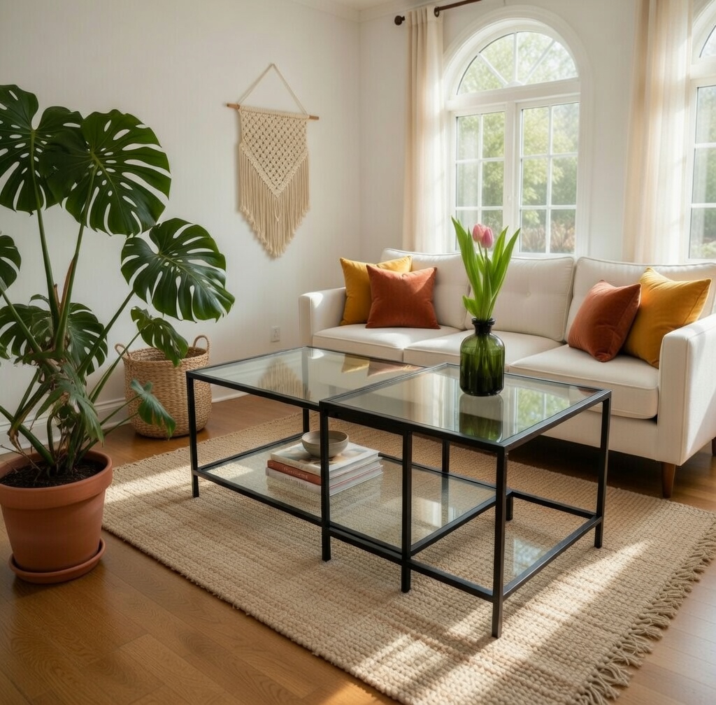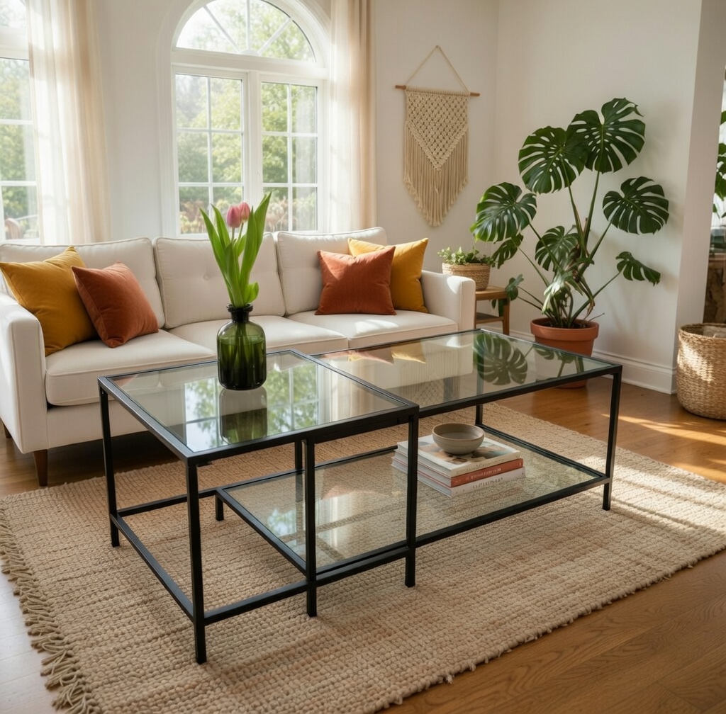 Modern tasarımı sayesinde salon, oturma odası ve ofis gibi alanlarda şık bir merkez parça olarak kullanılabilir. Minimalist çizgiler ve şeffaf cam detayları ile estetik bir görünüm sunar.