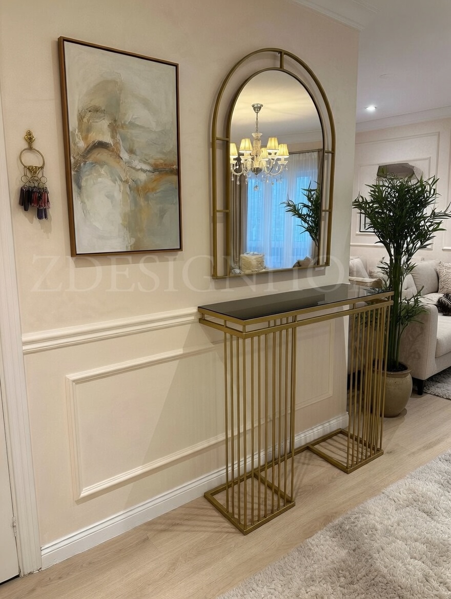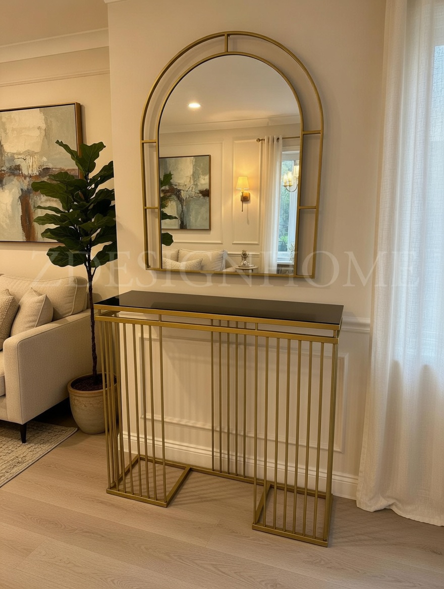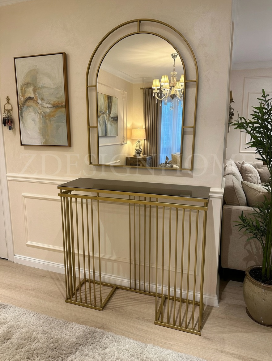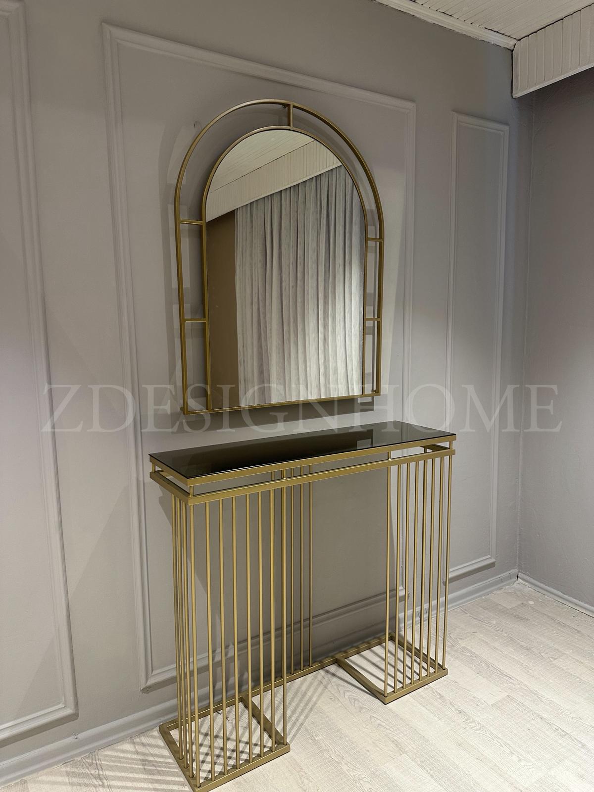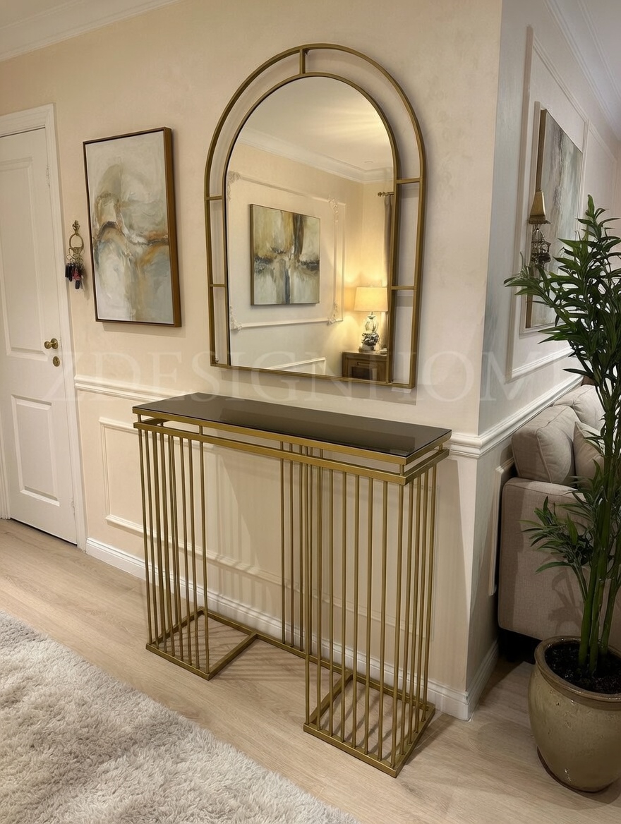 Modelin dikkat çekici özelliği gold ayna raf tasarımıdır. Cam yüzey üzerinde yer alan bu raf, ürüne hem şıklık hem de modern bir karakter katmaktadır. Gold ayaklar, tasarımın zarafetini tamamlar.