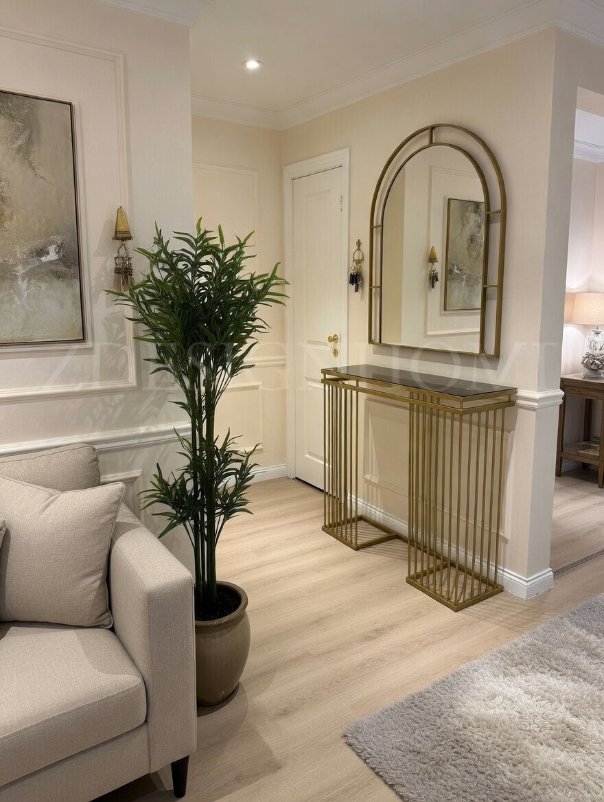 Selora Dresuar & Ayna Takımı, modern ve zarif tasarımıyla yaşam alanlarınıza şıklık katmak için tasarlanmıştır. ZDesignHome tarafından üretilen bu model, gold metal çerçeve ve ayak detayları ile mekâna lüks ve premium bir hava kazandırır.