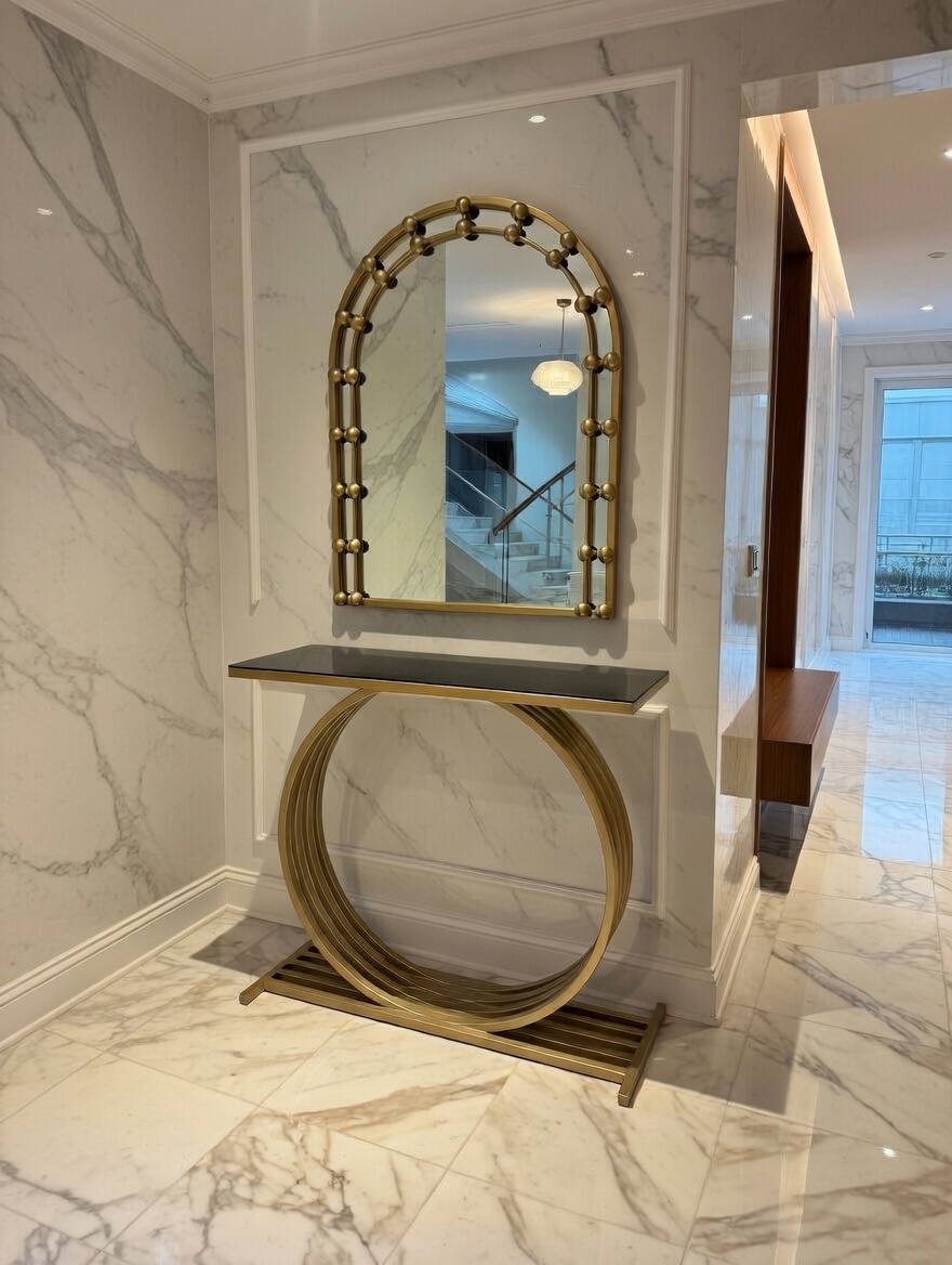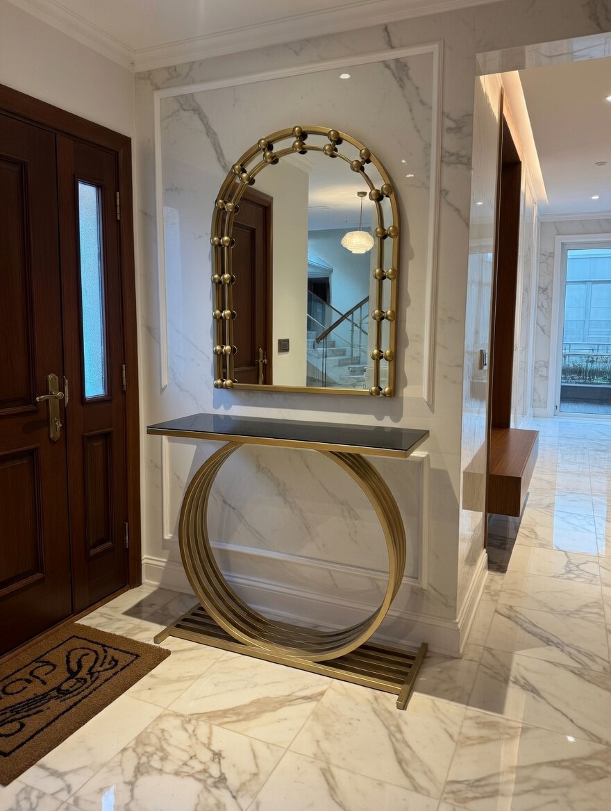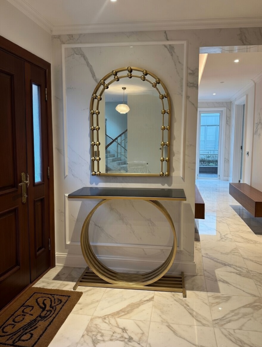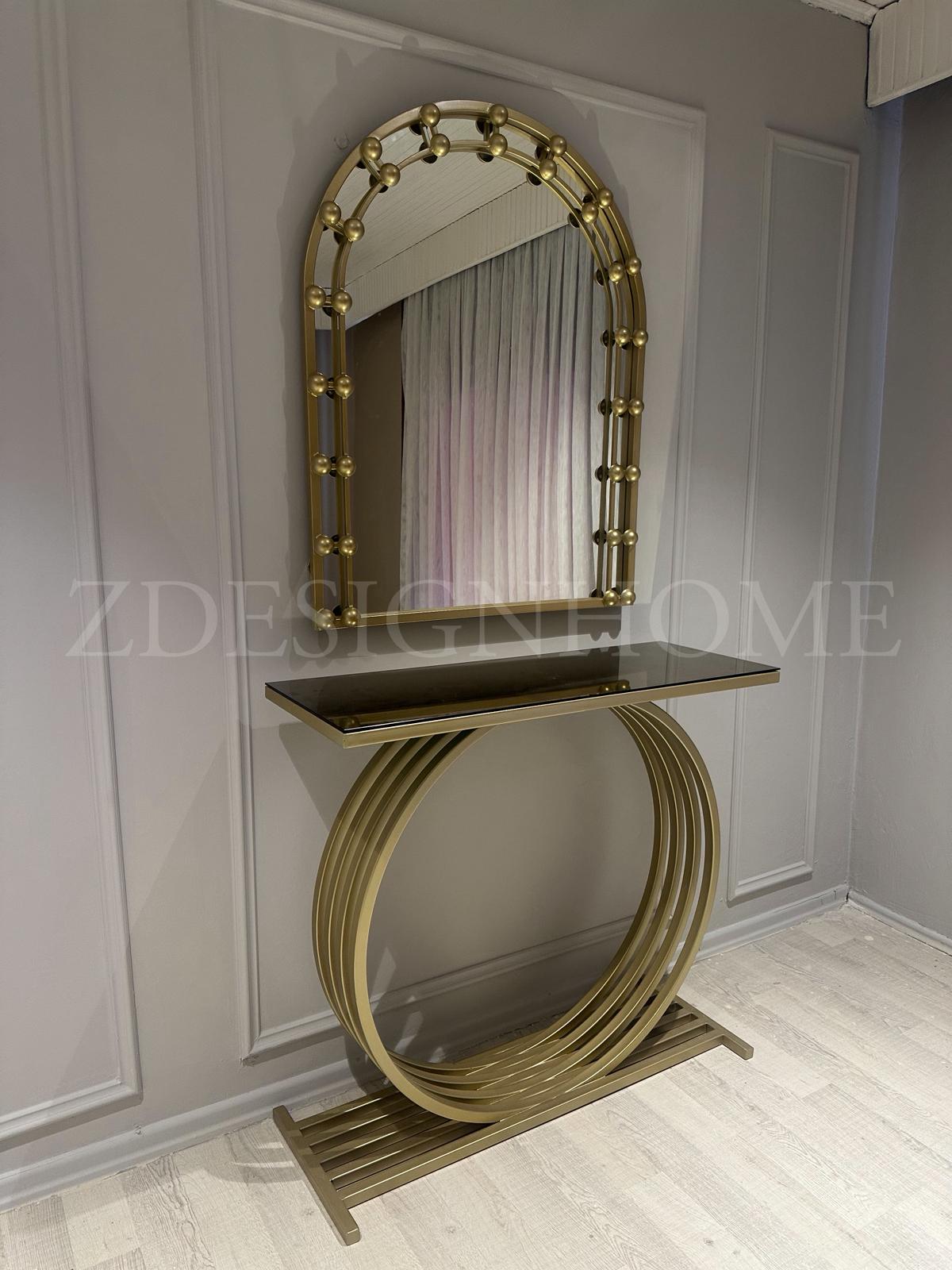 Modelin en dikkat çekici detaylarından biri bronz ayna raf tasarımıdır. Bu özel raf detayı hem kullanışlı bir alan sunar hem de ürüne modern ve şık bir karakter kazandırır. Ayak kısmında bulunan gold detaylar ise tasarımın zarafetini tamamlayan estetik bir dokunuş oluşturur.