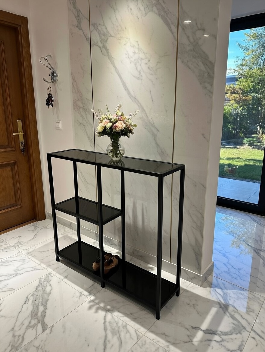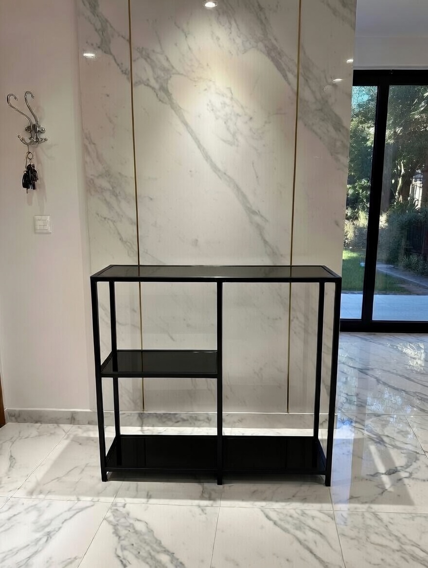 raflar siyah camdır . Montaja gerek yoktur , hazır bir şekilde gönderilmektedir.