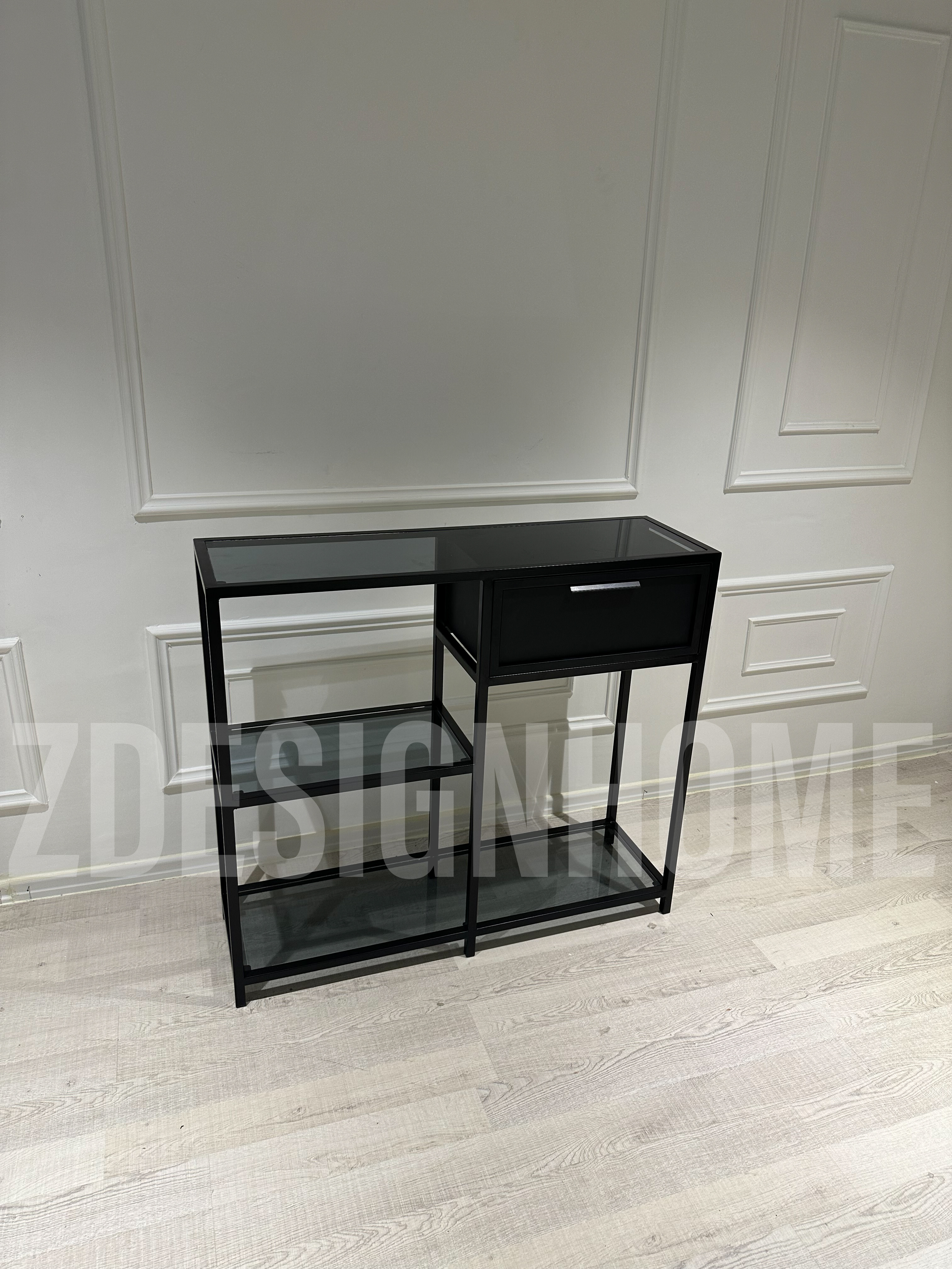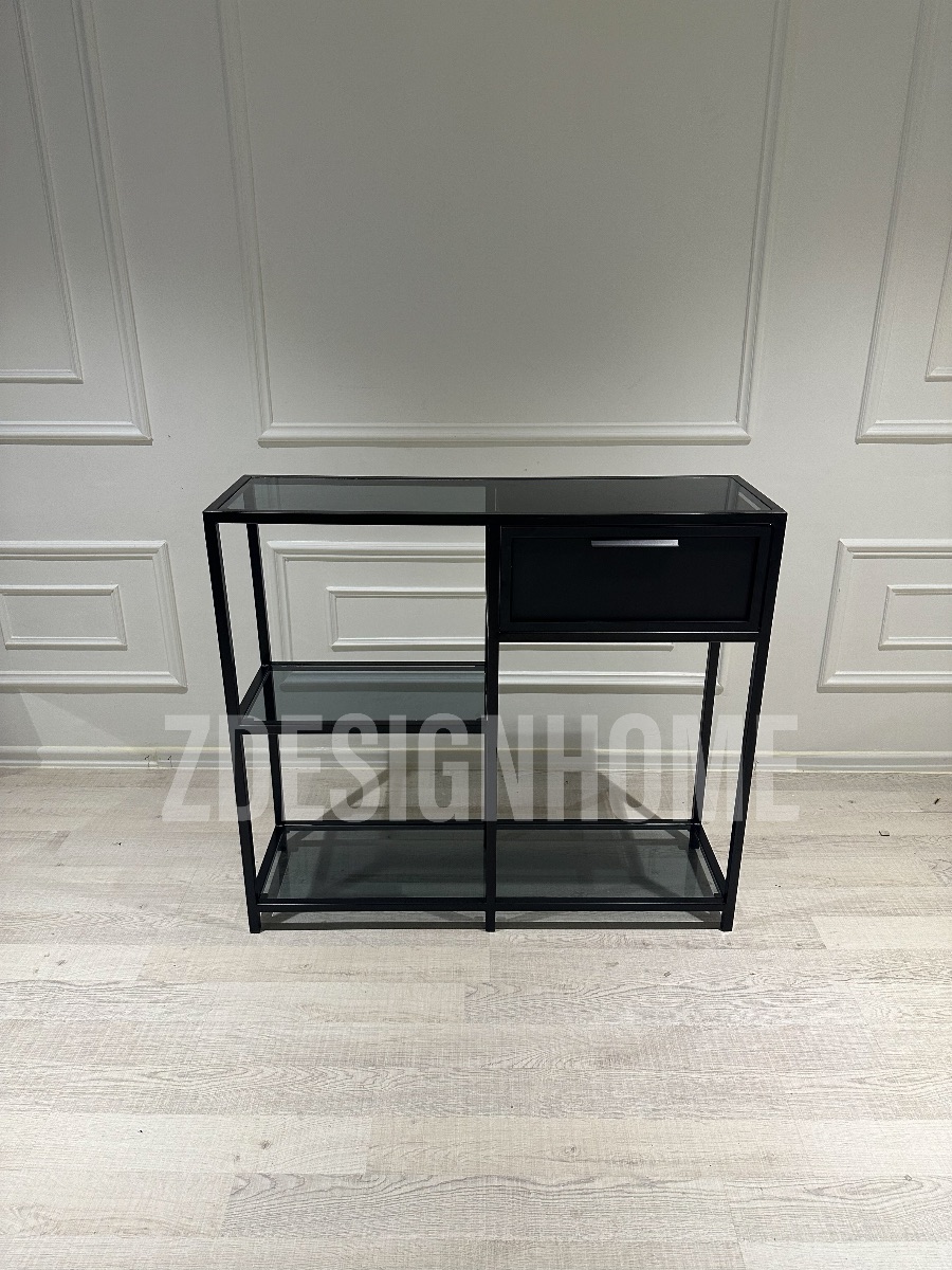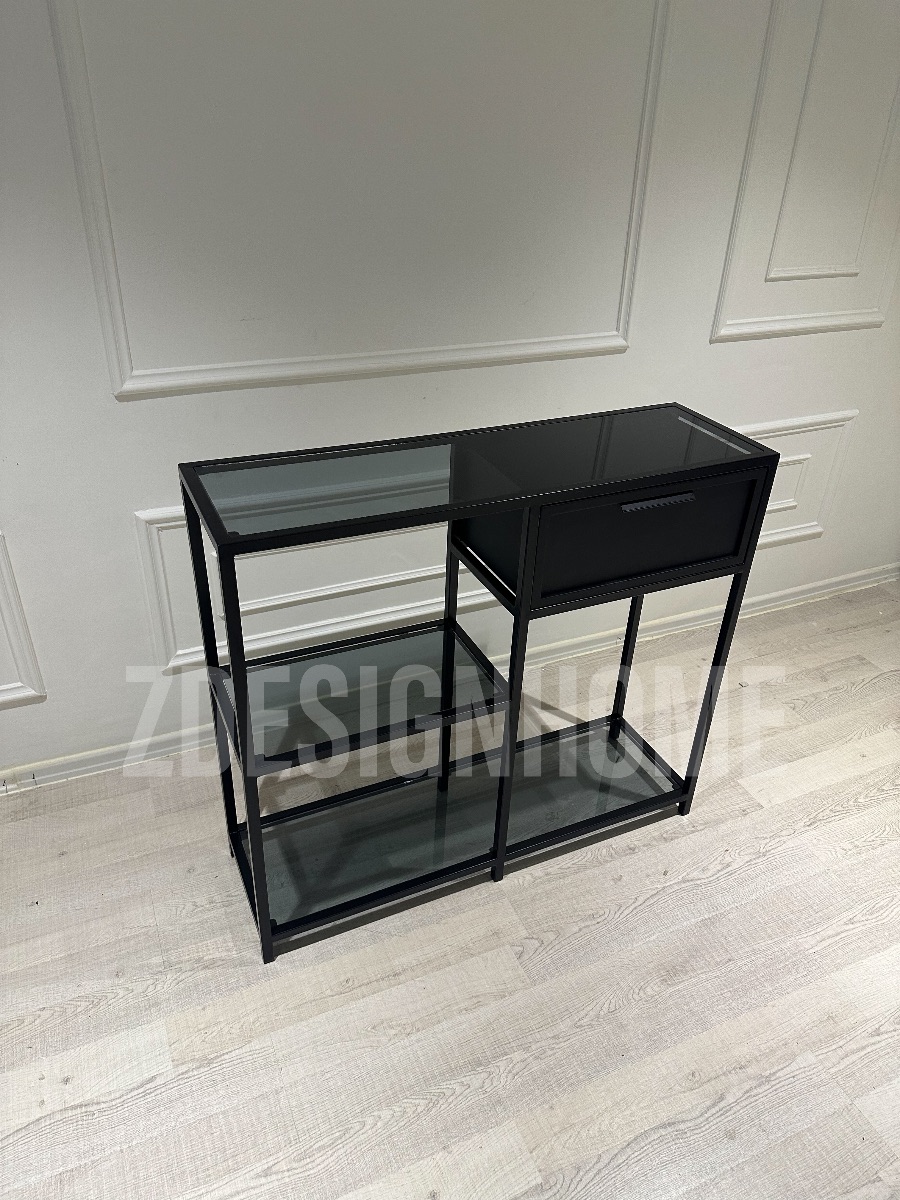 Ürün ölçüleri: Dresuar : 90 Cm yükseklik, 30 Cm derinlik , 100 Cm genişlik ölçülerde ,Raf füme camdır, Metal profil kullanılmaktadır,