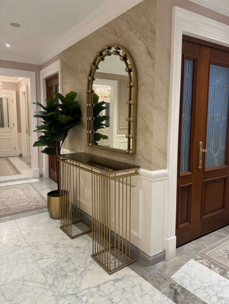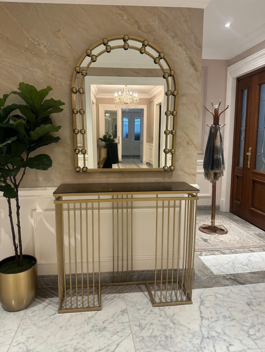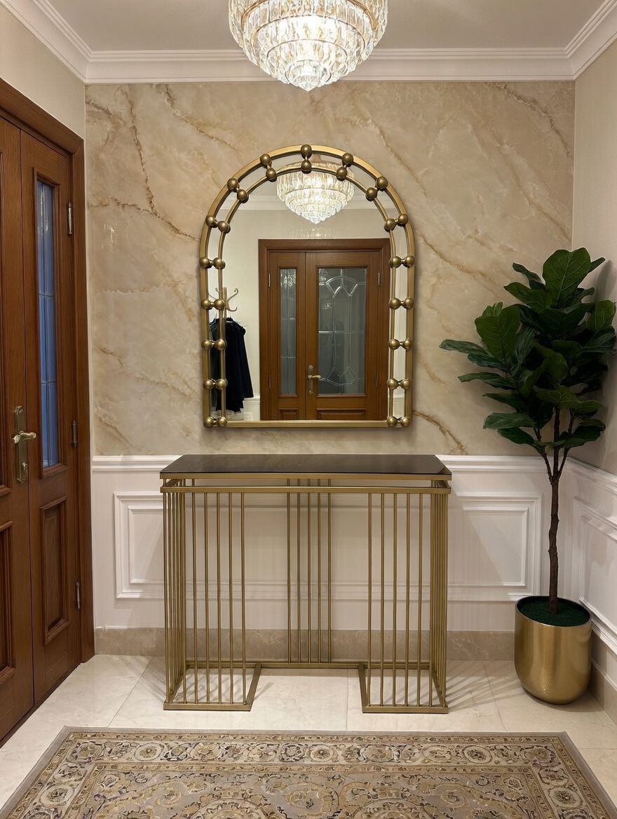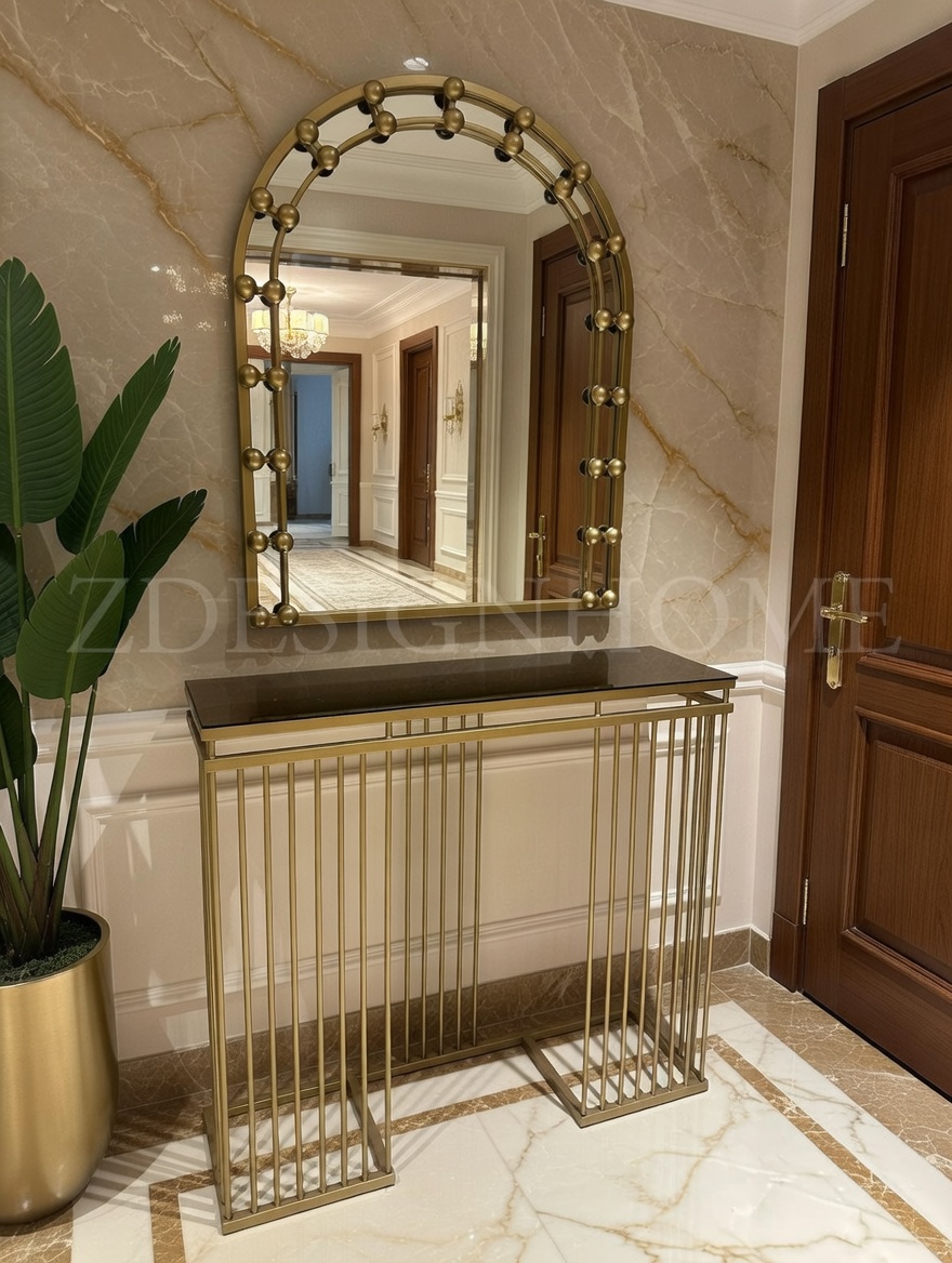 Modelin en dikkat çekici detaylarından biri bronz ayna raf tasarımıdır. Bu özel raf detayı hem kullanışlı bir alan sunar hem de ürüne modern ve şık bir karakter kazandırır. Ayak kısmında bulunan gold detaylar, tasarımın zarafetini tamamlayan estetik bir dokunuş oluşturur.
